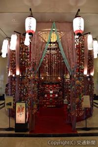 JR名古屋駅直結の名古屋マリオットアソシアホテル(ジェイアール東海ホテルズ運営)の15階ロビーで2日から、「雛(ひな)のつるし飾り」の展示が始まった。