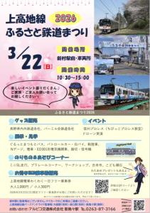 アルピコ交通は3月22日に上高地線新村駅(新村車両所)で、「2026上高地線ふるさと鉄道まつり」を開催する。入場は無料で、地域住民や鉄道ファンへの感謝を込めた多彩な催しが予定されている。